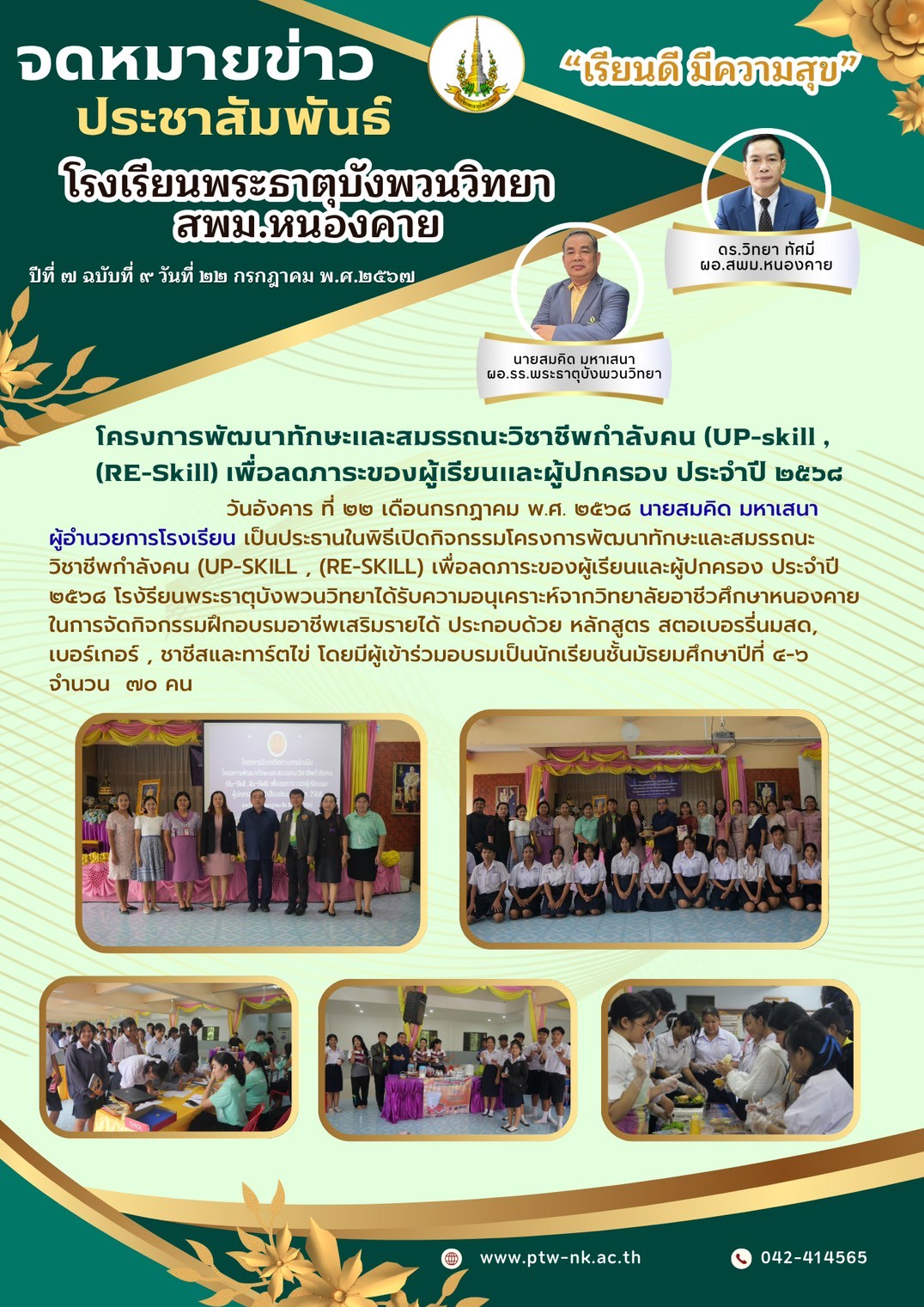 วันอังคาร ที่ 22 กรกฎาคม 2568 จัดกิจกรรมโครงการพัฒนาทักษะและสมรรถนะวิชาชีพ (Up-Skill) , (Re-Skill)เพื่อลดภาระผู้เรียน และผู้ปกครอง
