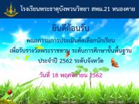 รับการประเมินนักเรียนพระราชทาน ระดับจังหวัด ปี 2562
